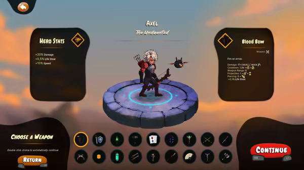 Complete quests to unlock powerful heroes, each with a distinct playstyle and a loyal pet that fights alongside you.