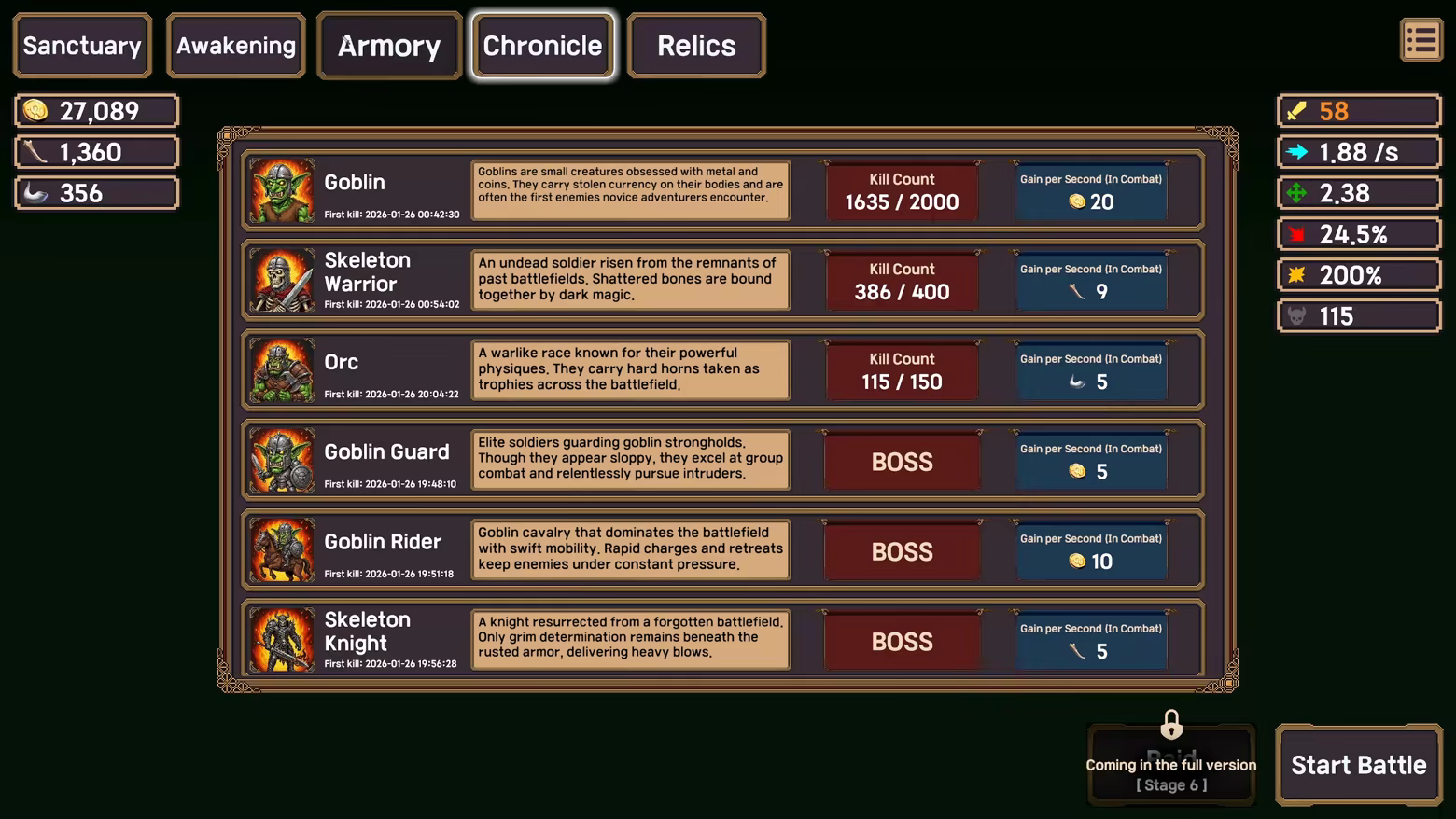 The Chronicle records the enemies you’ve faced and the battles you’ve survived.